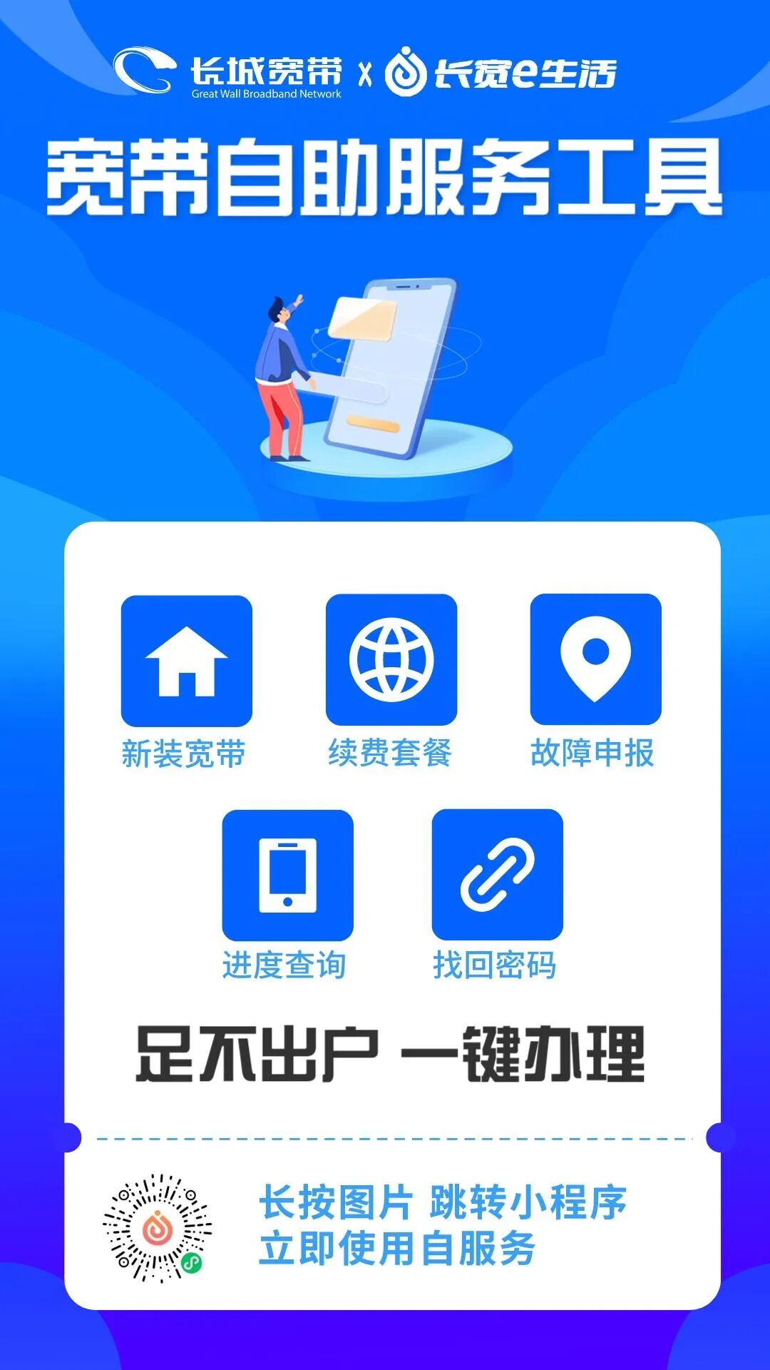 宽带自助服务,足不出户,一件办理宽带业务
